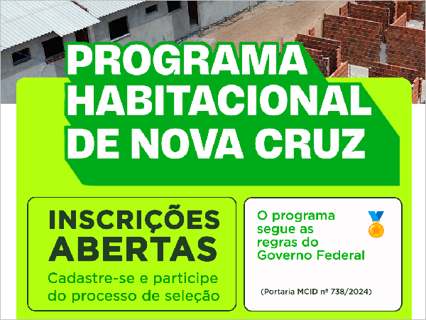 A Prefeitura Municipal de Nova Cruz/RN informa que estão abertas as inscrições para participação no Programa Habitacional do município. Para garant [...]