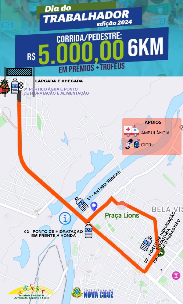Nesta quarta-feira, a Prefeitura Municipal de Nova Cruz, por meio da Secretaria de Juventude, Esporte e Lazer, sob a liderança do Secretário Ronaldo Glaydson, divulga o percurso oficial para as modalidades da Corrida de Pedestre (6 Km) e Eco Pedal (35 Km).